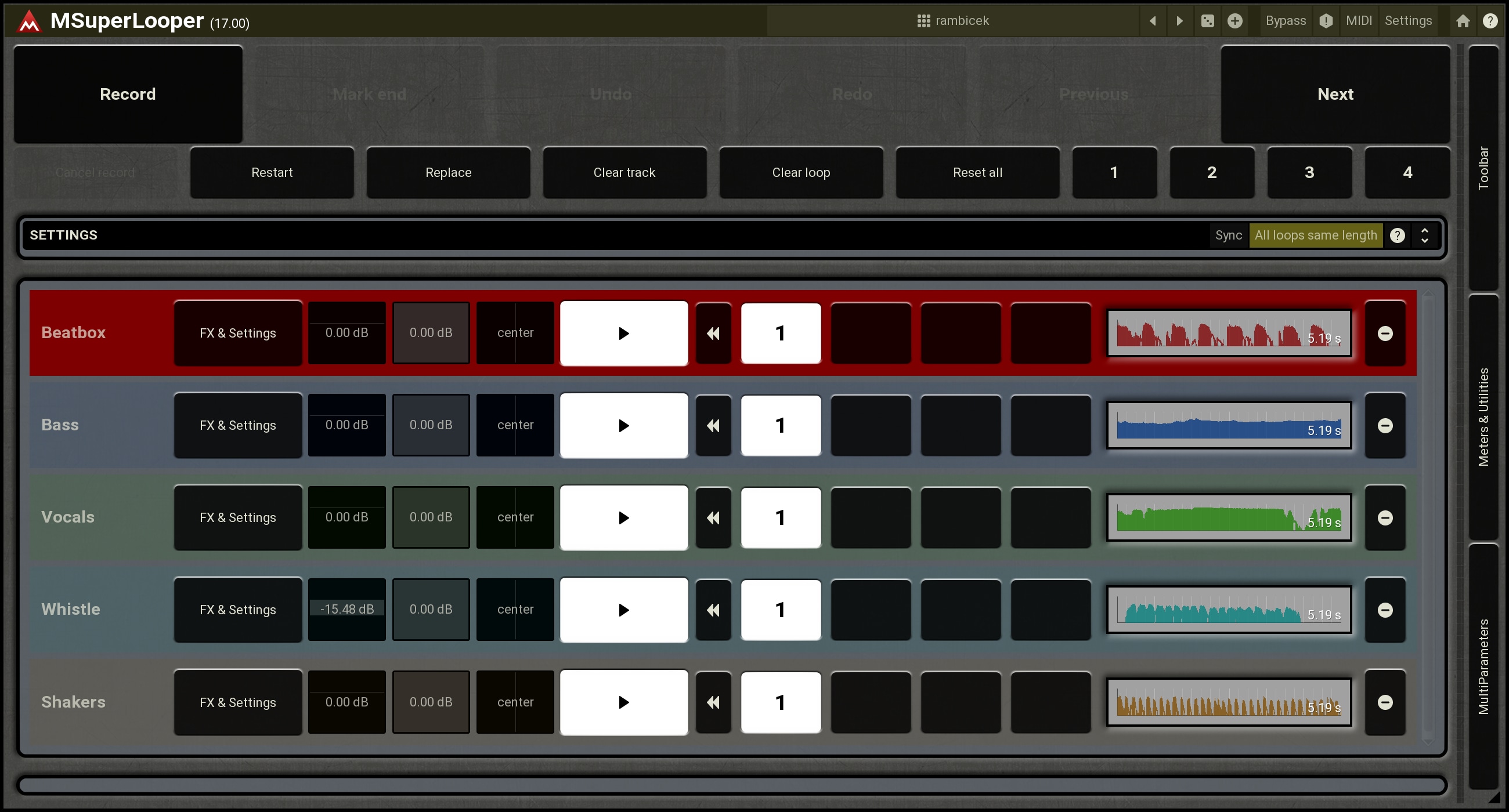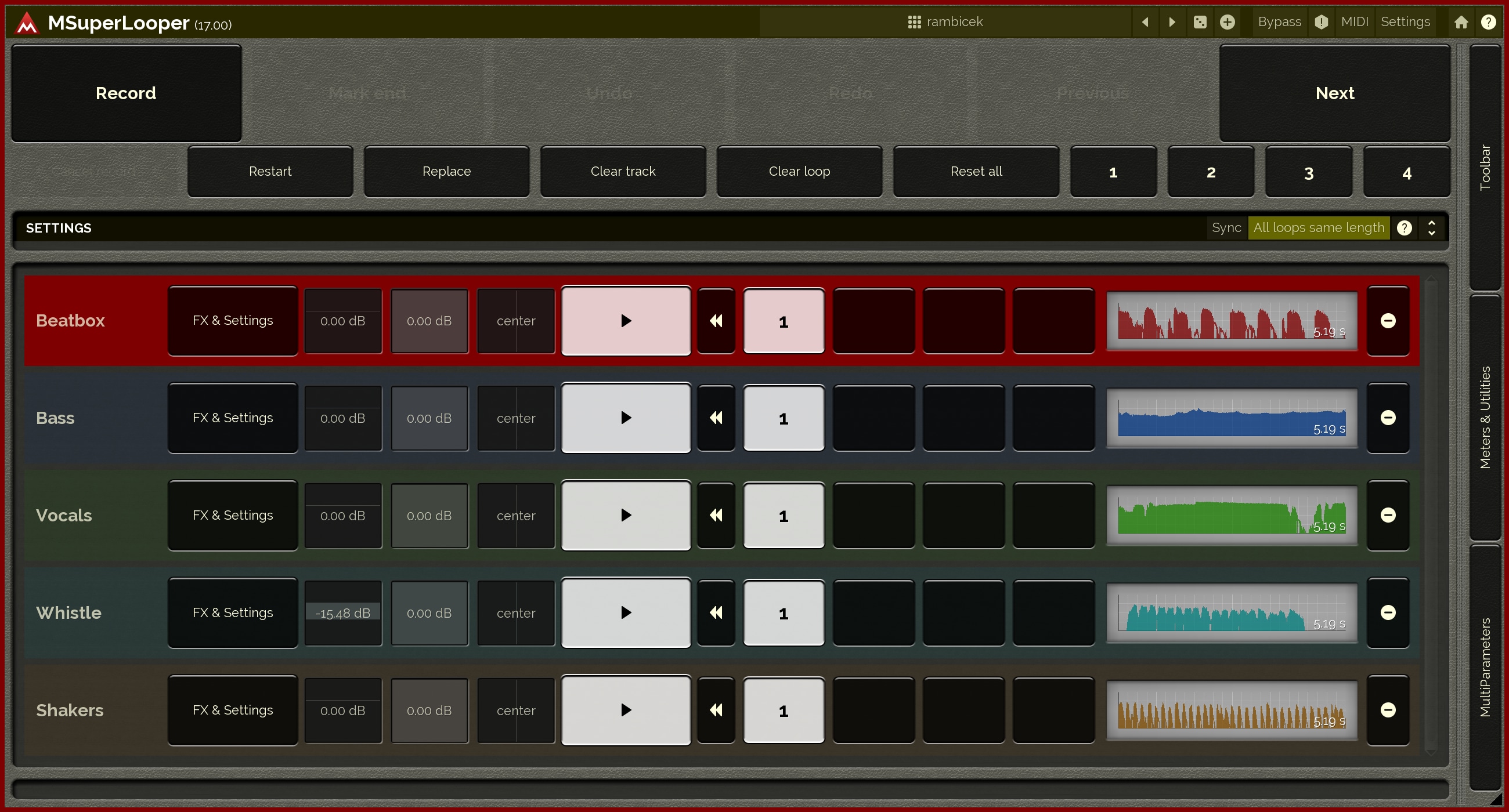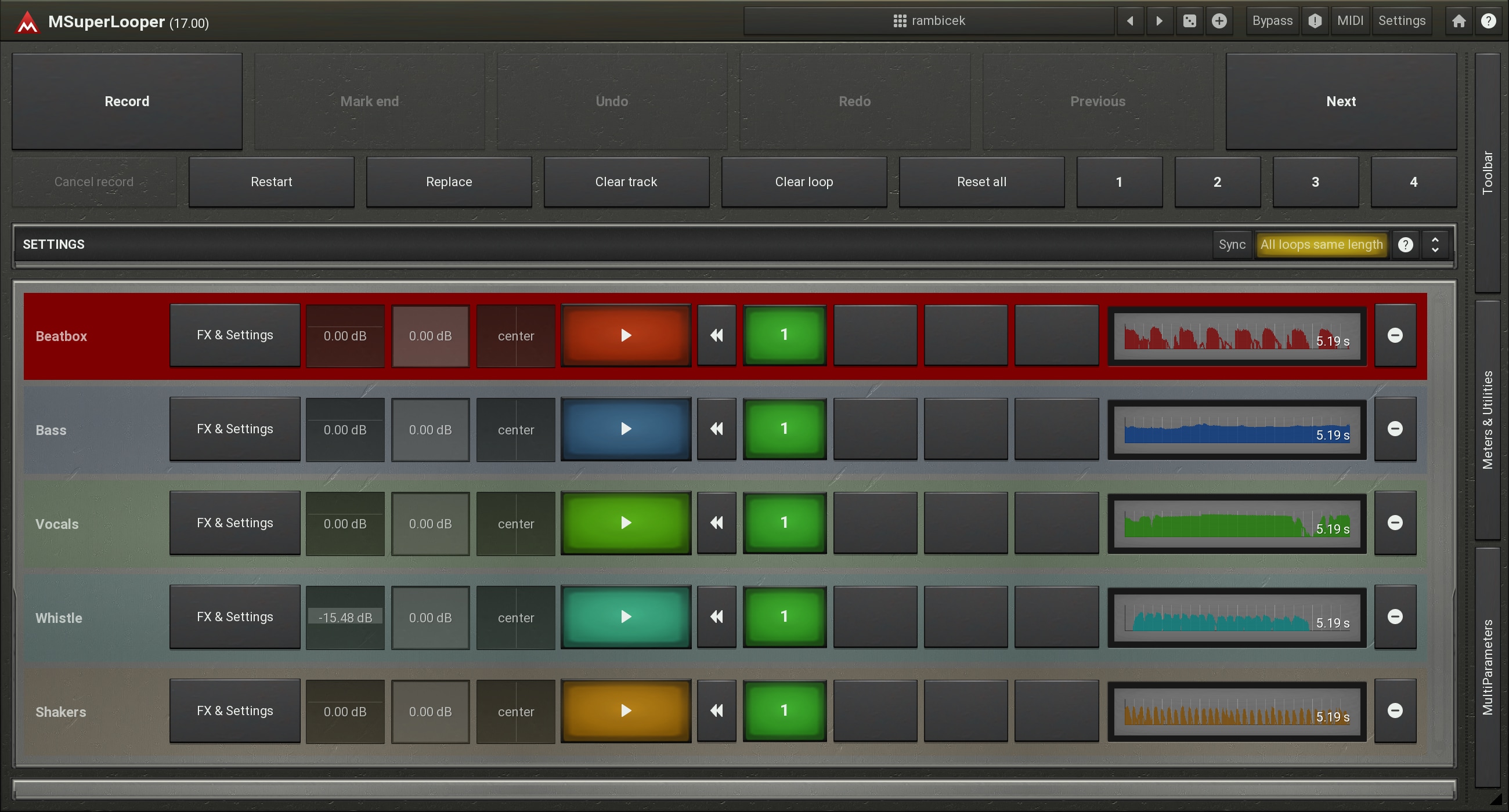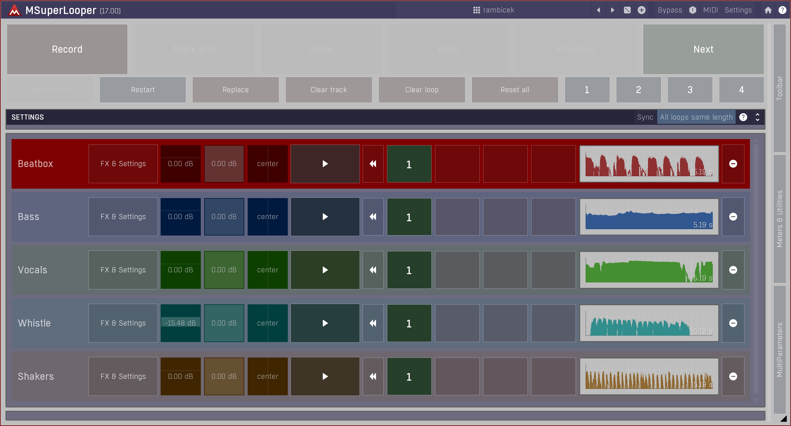 MSuperLooper is the next generation multitrack looping tool designed for live performances. Capturing ideas and getting creative was never easier. It is quick, versatile and offers endless options.