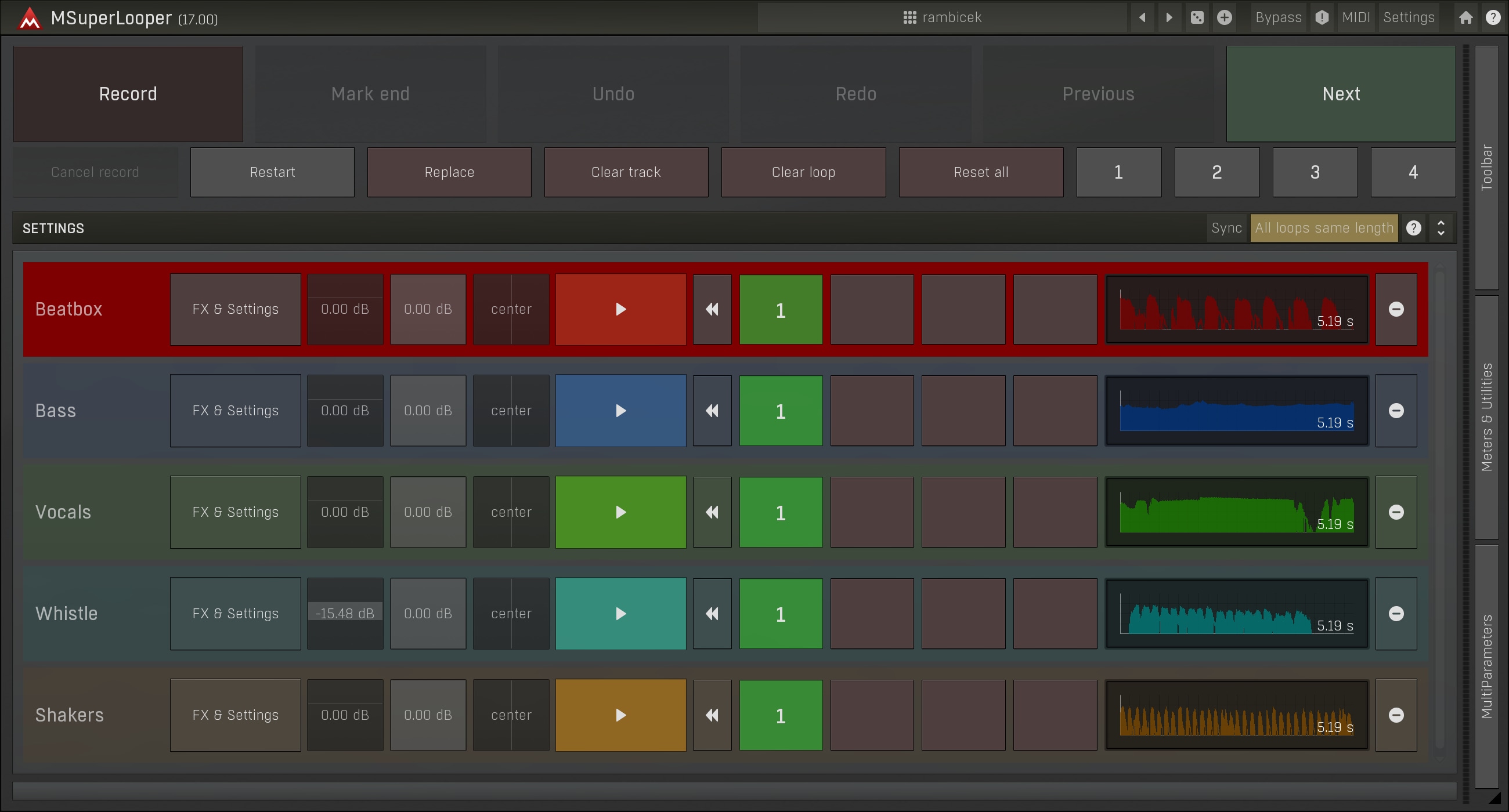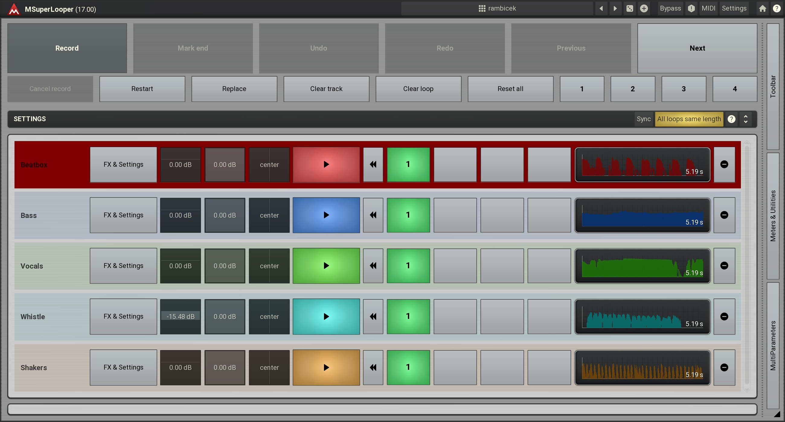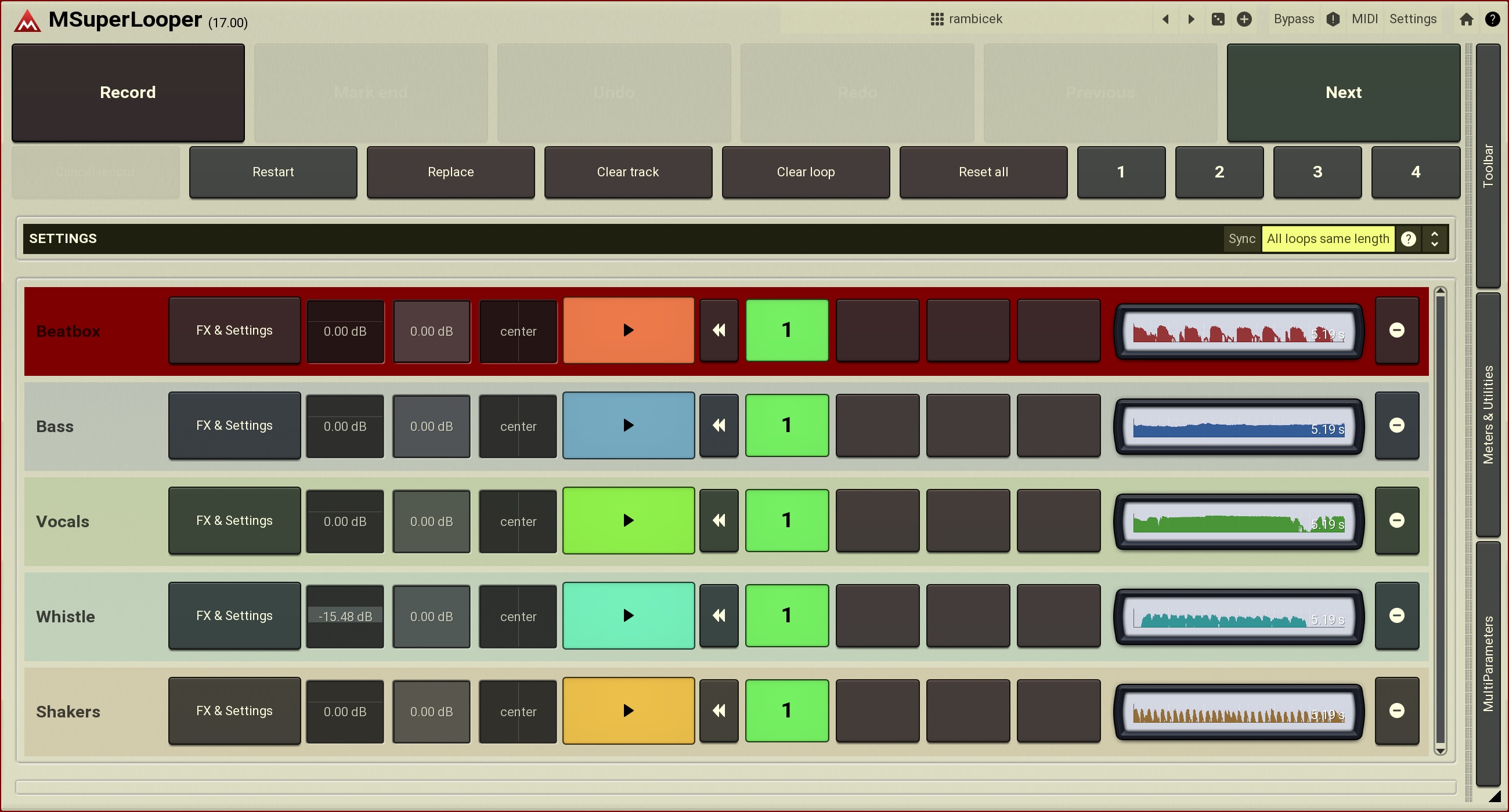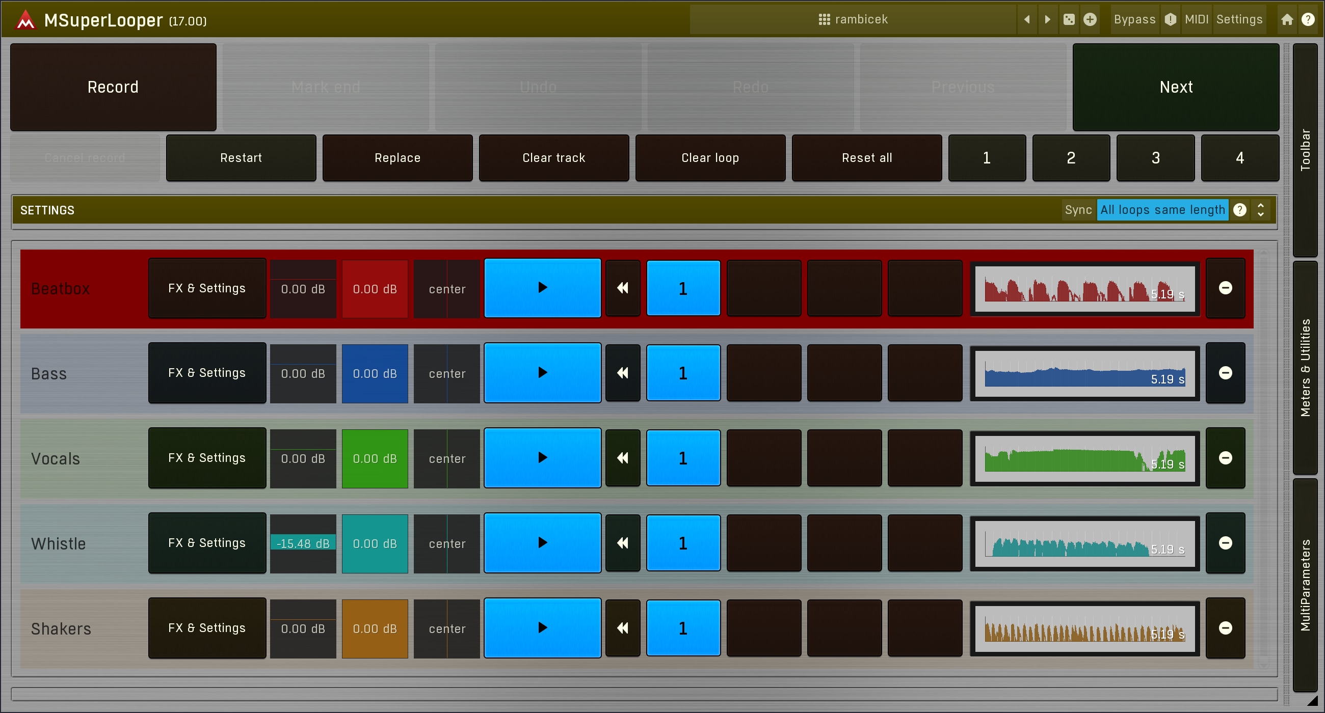 MSuperLooper is the next generation multitrack looping tool designed for live performances. Capturing ideas and getting creative was never easier. It is quick, versatile and offers endless options.